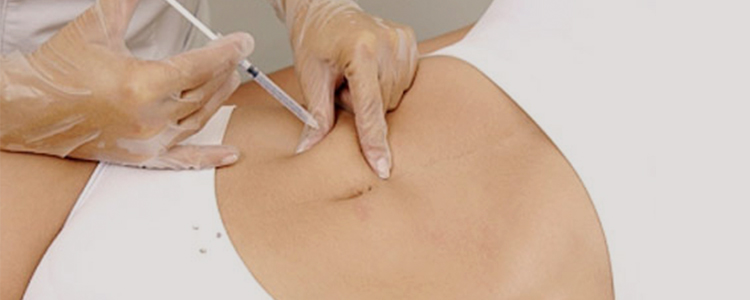 Aplicación subcutánea de un fármaco estéril utilizando la técnica de inyección llamada mesoterapia. Aplicándose, según el caso, cócteles de sustancias lipolíticas, anticelulíticas, reafirmantes, drenantes y reductivas.
